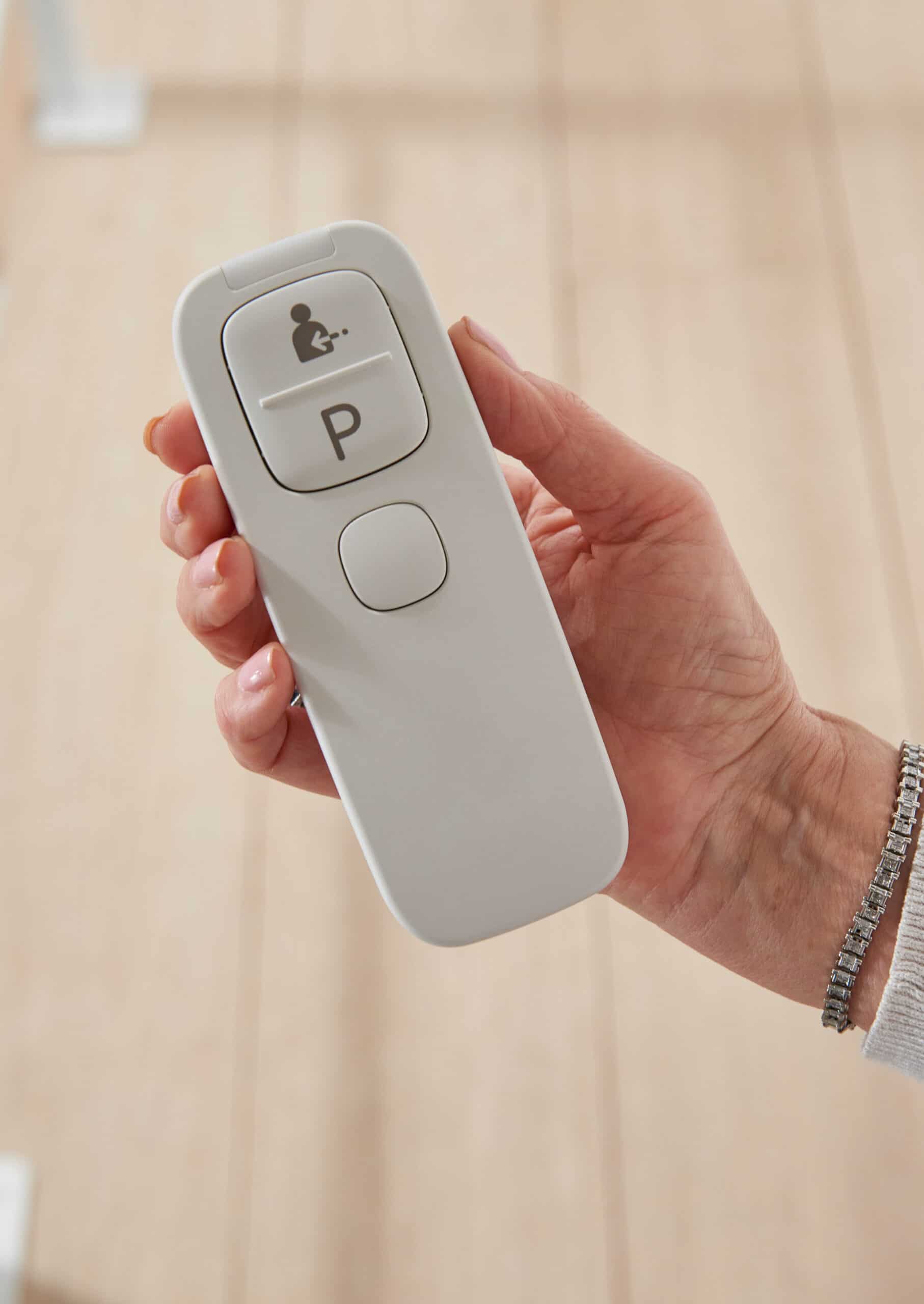 Simple and convenient operation of the Bespoke infrared remote control allows the stairlift to be called or sent up the staircase when it’s not being used.