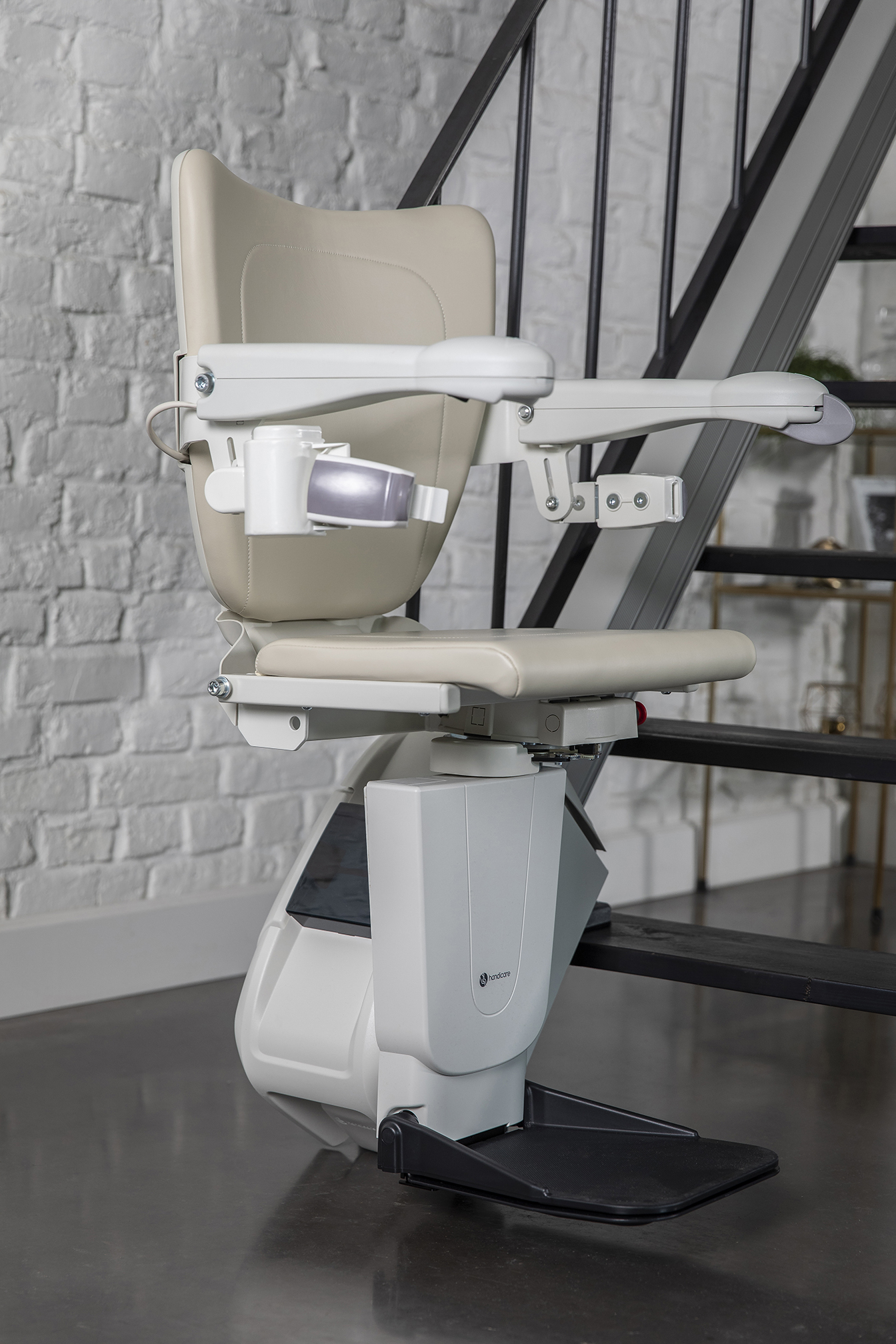 The Handicare 1100 is ultra slim and compact and can be placed close to the wall, leaving a lot of free space on the staircase for other stair users to safely climb the stairs.